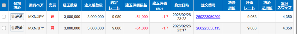 本日はスワップ3倍で、前日のSポジションがあったので地道にスワップの損失がでかい。