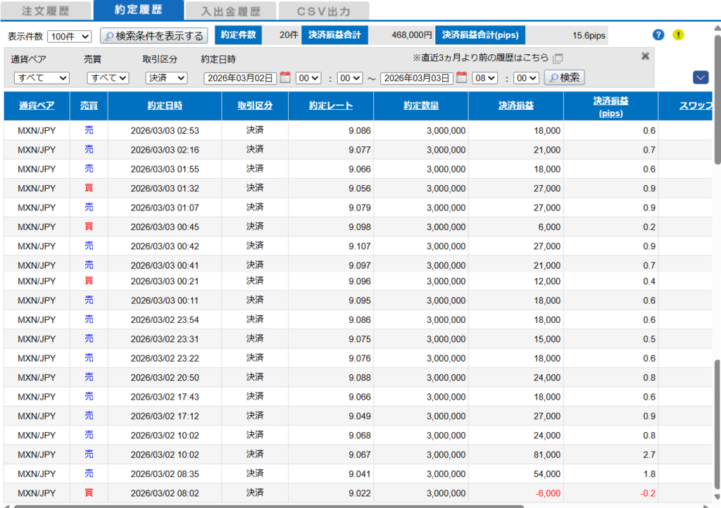 早朝の乱高下で15万ほど稼げました。以後は夜間の指標時に寝落ちしてしまいました。(反省 )