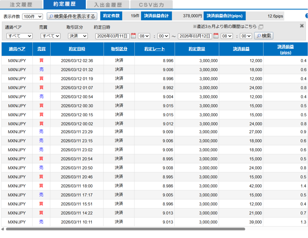 9.0あたりの上下をずっと繰り返している状況だったので、売りと買いのポジションを同じに入れて1.0pipsを目途にひたすら決済を繰り返していました^^夕飯に久しぶりに宅配ピザ頼んだので、ピザ代ぐらいを稼ぐ気持ちでトレードしてました。